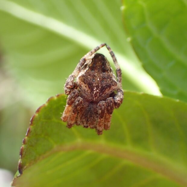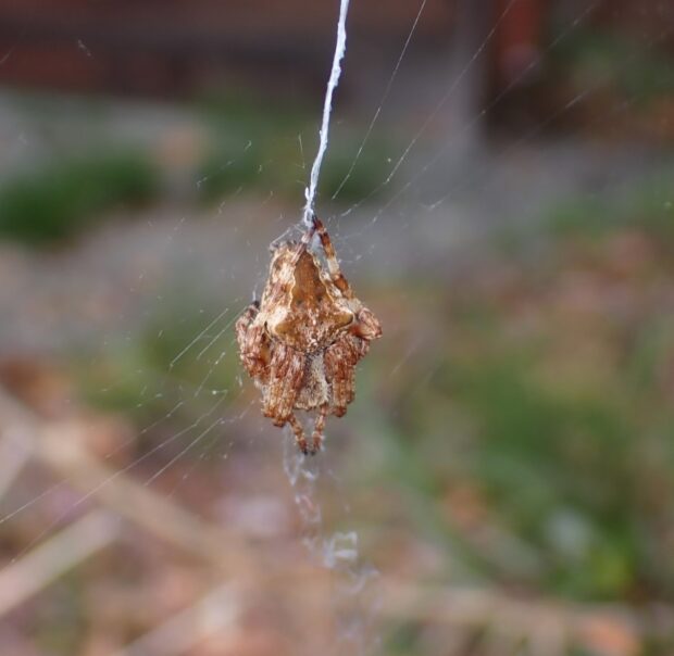 網に隠れ帯をつけるオニグモ