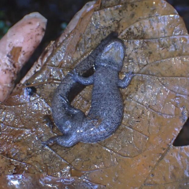人里近くに住むトウキョウサンショウウオは、 開発や里山の放置による繁殖場所の乾燥化が進み減少しています。 最近はイノシシやアライグマ(外来種)などの食害により激減している地域がみられ、 各地で保全活動が行われています。 環境省レッドリスト絶滅危惧Ⅱ類。