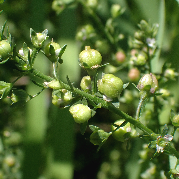 これは昆虫に寄生された虫こぶ(カワヂシャツボミタマフシ)。 寄主はムシクサにも寄生するムシクサコバンゾウムシ?