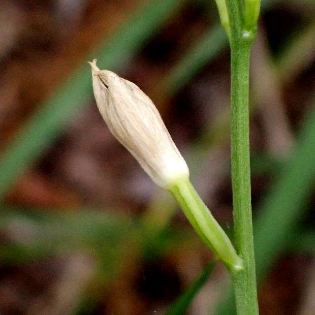 春の雑木林や松林に生える白花のランの仲間。 花の下の距がとても短いこと、 古い花は茶色っぽくなることなどが本種の特徴です。 近年分布を拡大しつつあるといわれ、 新たな産地が次々に見つかっています。 名前は最初に見つかった神奈川県の鵠沼(くげぬま)に由来します。