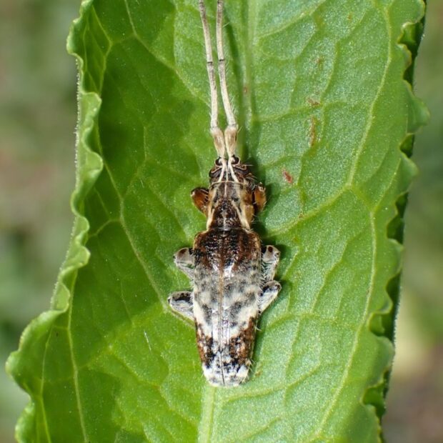 • 触角は長く、 体は白い毛が模様を作る。