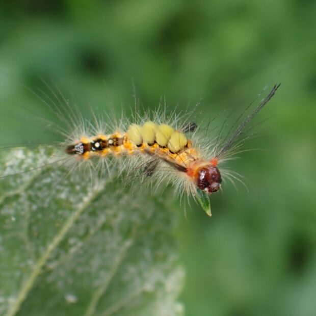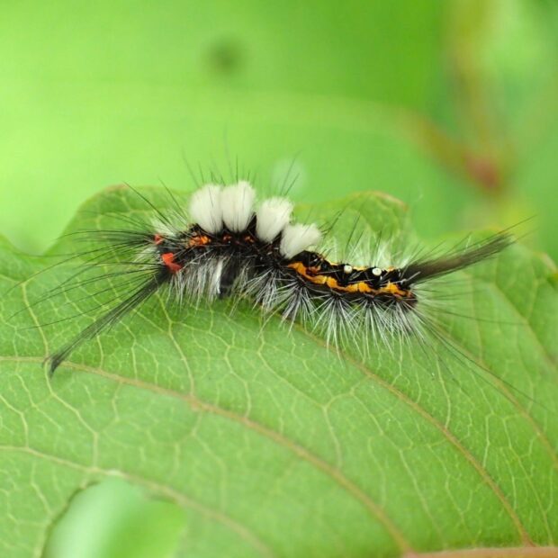 歯ブラシのような毛束をもつ毛虫