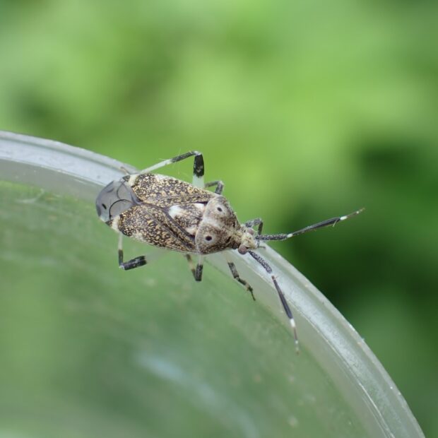 前胸に目玉模様があるカメムシ。 目玉模様が顔のように見えることから、 「メンガタ」と名づけられました。 いろいろな樹木の花にやって来ます。