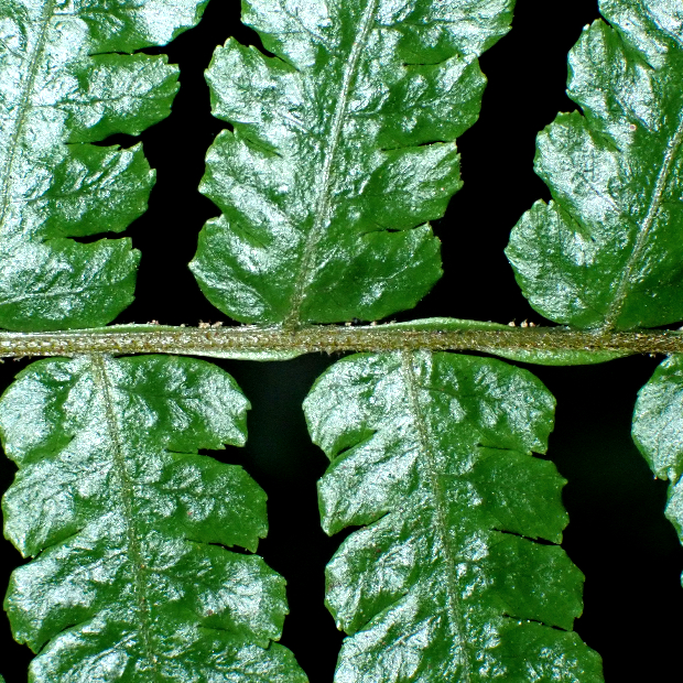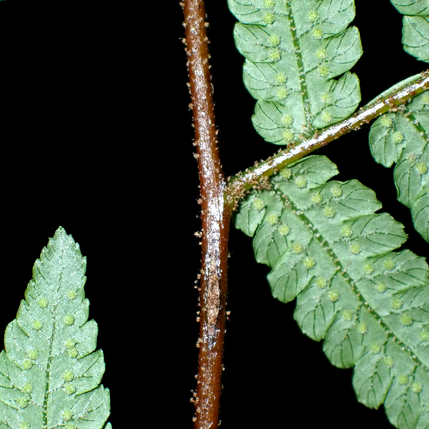 暖かい地域の湿った林縁に生えるヘゴ科のシダ。 葉は三角形状でわずかに紫色っぽさがあり、 軸部分が茶色っぽいです。 葉裏の丸い胞子のう群に包膜はなく、 葉柄基部には全体が明るい茶色の鱗片が多くつきます。 マルハチは小笠原諸島にのみ生える近縁種で、 それよりも草っぽいことからこの名があります。