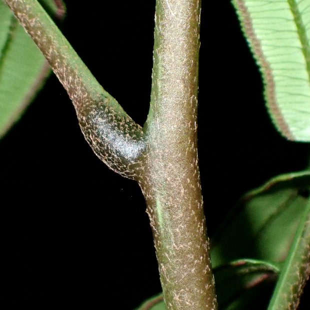 リュウビンタイという変わった名前は、 葉柄基部につく黒色の托葉に由来しています。 これが竜鱗(りゅうりん)に例えられ、 それが変化して現在の「竜髭帯」になったと考えられています。