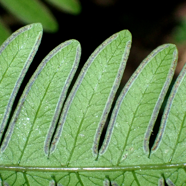 胞子の群はフチに長くつく。