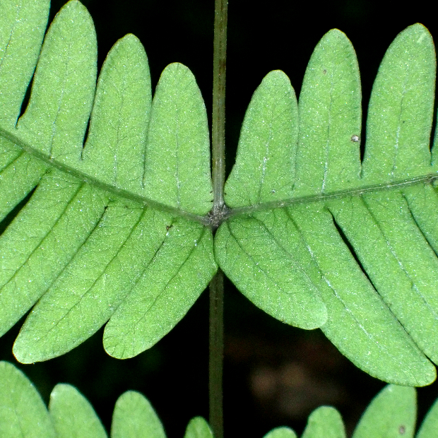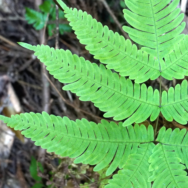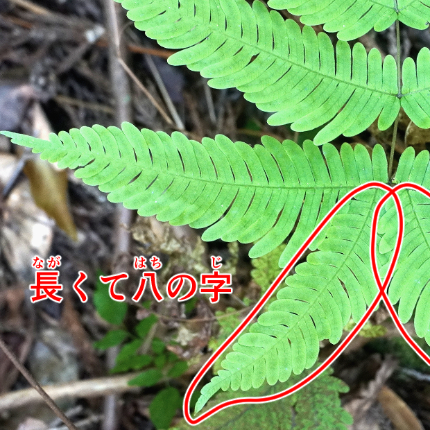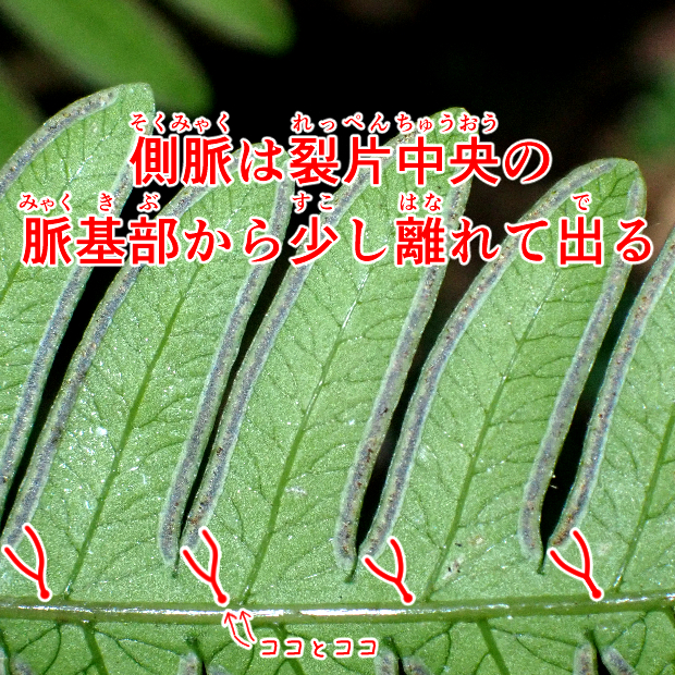 (右が見切れてしまっているが)、 葉軸に接する下向き小羽片2本が長く、 合わせて八の字に見える。