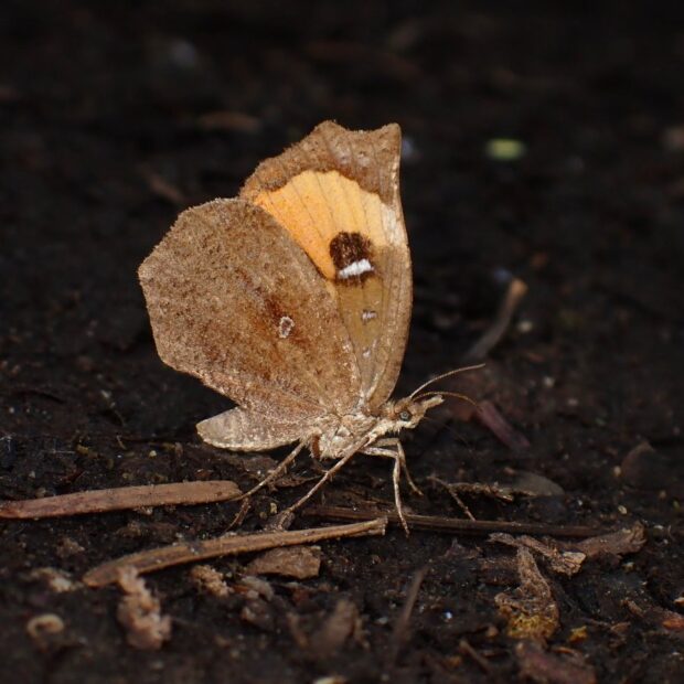 山で見られる昼行性のガ。 前ばねにあるオレンジ色のいかりの形の紋が名前の由来になっています。 日中さかんに飛び、 花にやって来ます。