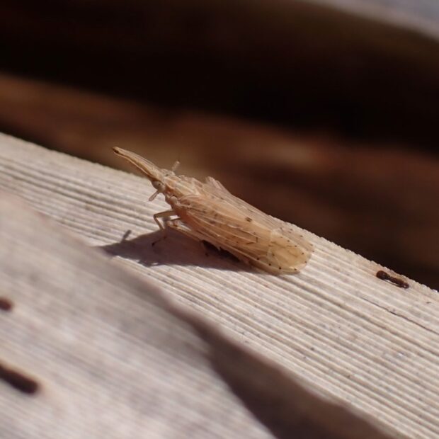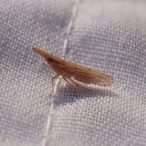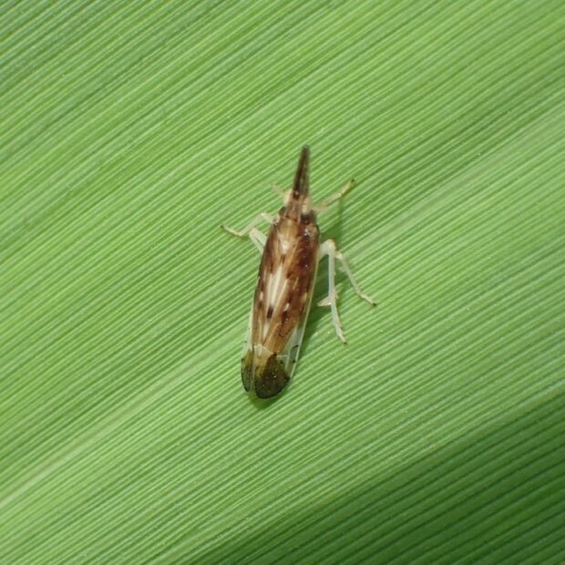 ヨシ原や水田周辺などで見られるウンカの仲間。 季節により体色が違い、 秋や春に現れるものはうす茶色。 夏に現れるものは黒っぽく、 以前は「クロバネテラウチウンカ」と呼ばれ別種とされていました。