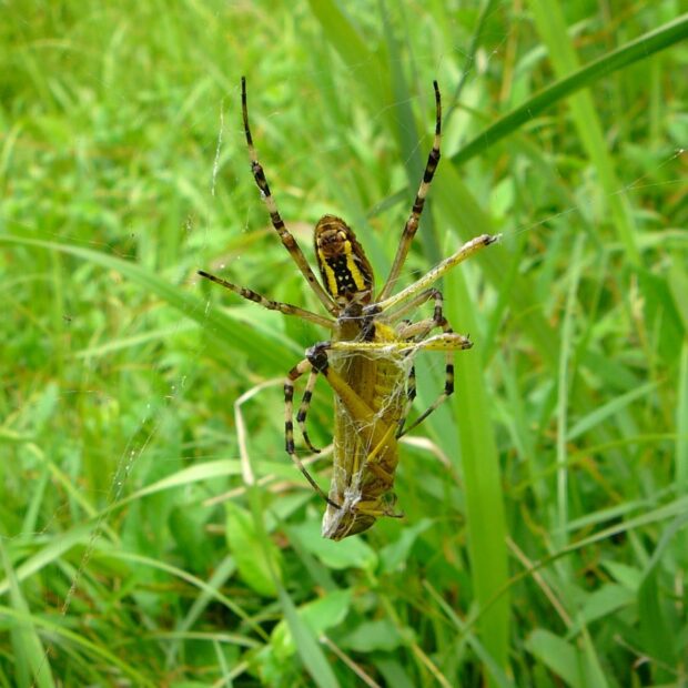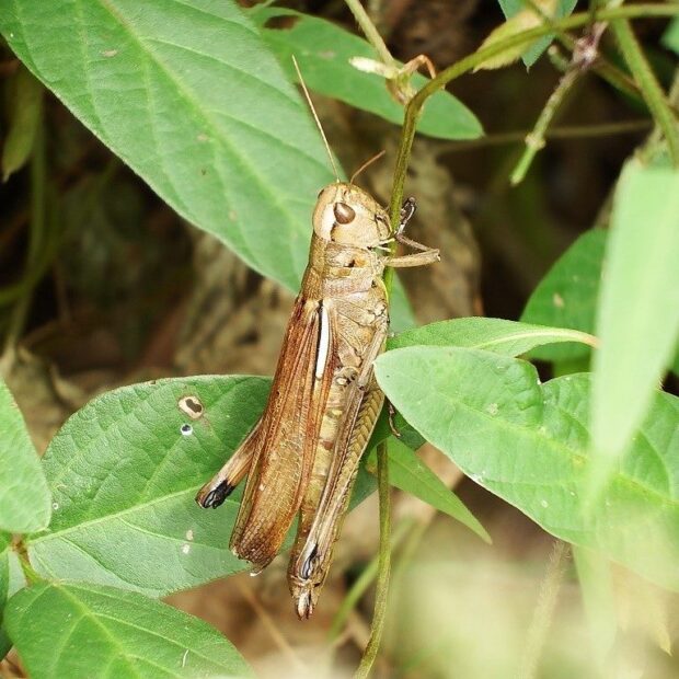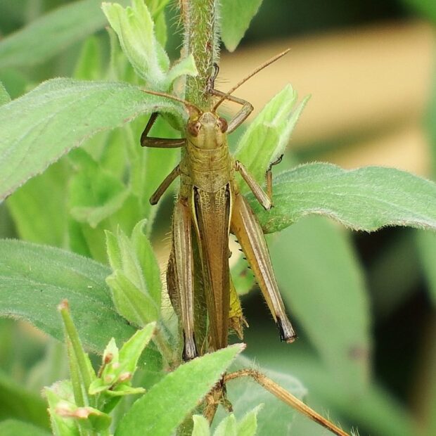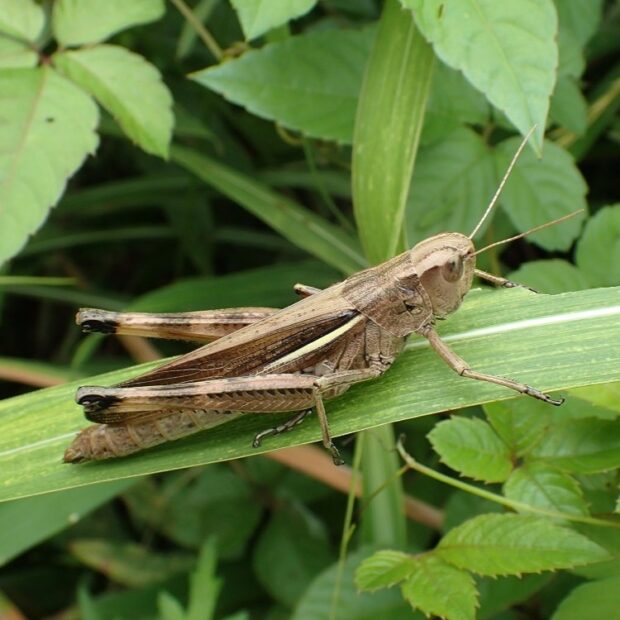 丈の高い湿った草地で見られるバッタ。 別名ツマグロイナゴ、 ツマグロイナゴモドキ。 はねの先端と後あし腿節末端が黒いのが特徴。 オスとメスで色が違います。