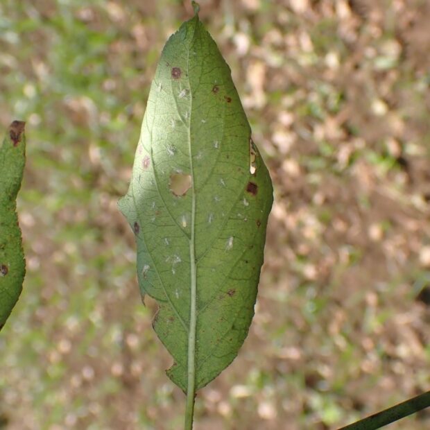 • 葉の裏に幼虫の白い脱皮殻がついている。