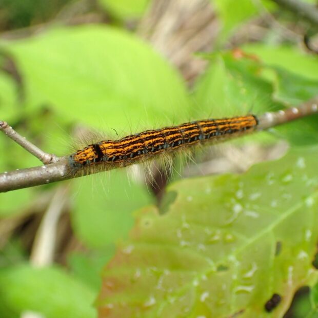 山地性のエダシャク。 はねの色や模様はさまざまで、 非常に変化に富みます。 はねの縁は波型で、 前ばねの先端はとがります。 後ばねを隠す独特な姿で葉にとまります。