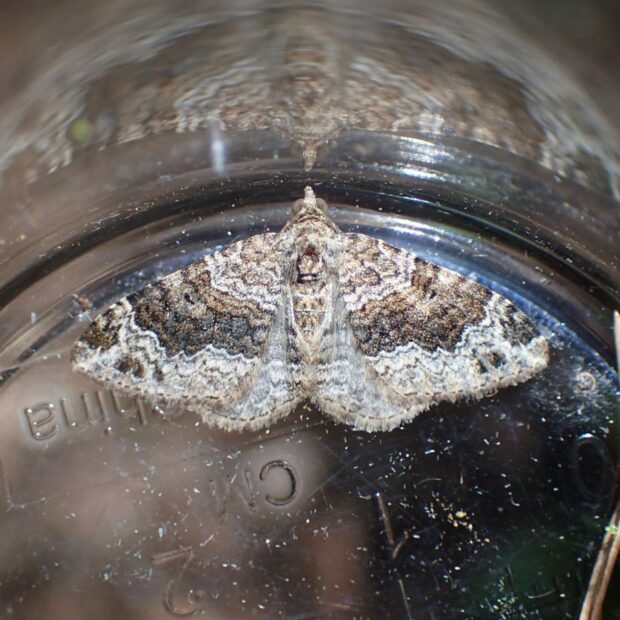 ナミシャクの仲間。 平地~山に生息し、 普通に見られます。 横線が細かく波打っているのが特徴。 色や模様は個体により差があります。