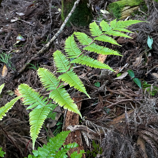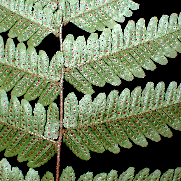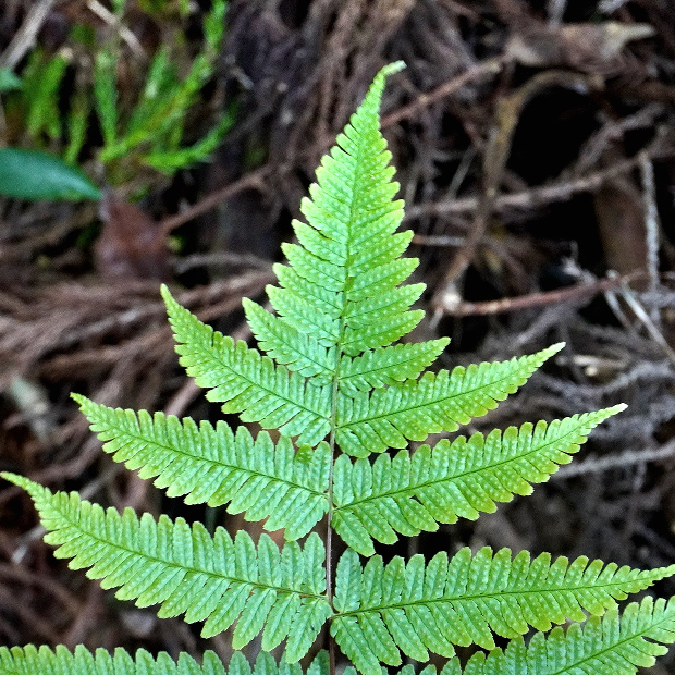 ベニシダによく似るが、 より葉軸に直角に近い角度で出る傾向があり、 小羽片は長くて切れ込みが深め。 この点はややヌカイタチシダモドキっぽさがある。