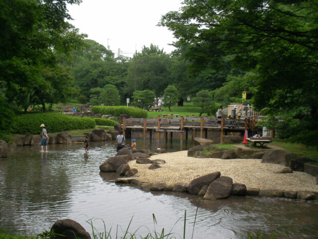 B地区は、 夏場には流れのある人工池があり、 その周囲は憩いの広場となっています。