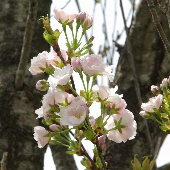 アマノガワは(えだ)がすべて上向き(うわむき)伸びる(のびる)ため(ほうき)(じょう)()(がた)になります。 これは野生(やせい)(しゅ)のサクラには()られない特徴(とくちょう)です。