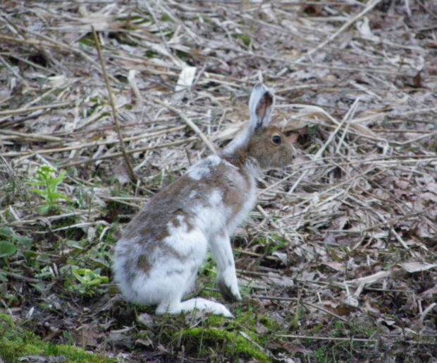 エゾユズリハは常緑樹(じょうりょくじゅ)で、冬(ふゆ)の間(ま)も葉(は)が雪(ゆき)の上(うえ)から顔(かお)を出し(だし)ていることがあります。それを草食(そうしょく)のウサギが食べ(たべ)ている痕跡(こんせき)を時々(ときどき)見る(みる)ことができます。ちなみに、エゾユズリハの葉(は)には毒性(どくせい)(アルカロイド)が含ま(ふくま)れているため、くれぐれも食べ(たべ)ないでね。