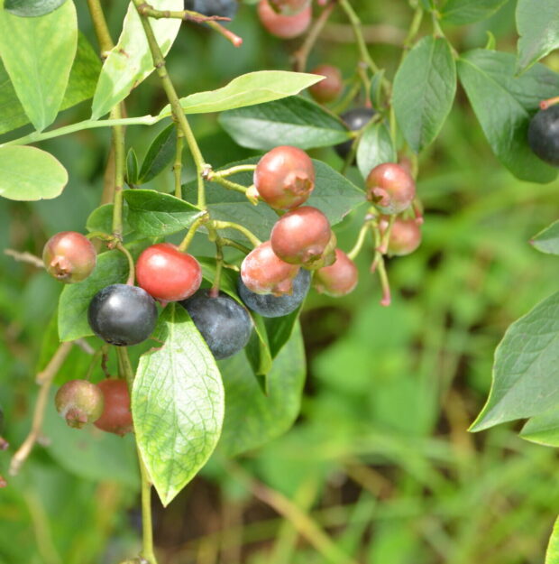 北(きた)アメリカに生え(はえ)ているツツジ科(か)スノキ属(ぞく)の木(き)をまとめてブルーベリーと呼ば(よば)れています。なので木(き)によって寒(さむ)さに強い(つよい)気(き)や弱い(よわい)木(き)があったり、実(み)や葉(は)の質感(しつかん)がちがったりするのです。