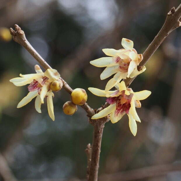 ロウバイの強い(つよい)香り(かおり)は、冬(ふゆ)数(すう)のすくなくなった虫(むし)を呼ん(よん)で受粉(じゅふん)をてつだってもらうためと考え(かんがえ)られます。