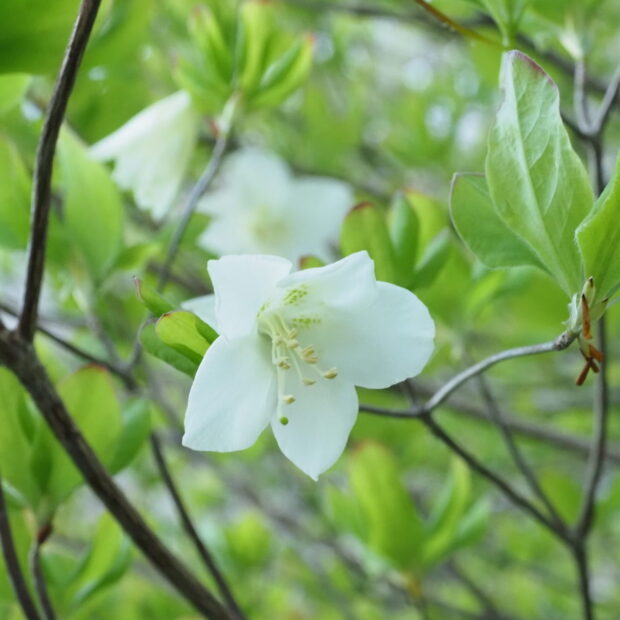 ゴヨウツツジは、愛子(あいこ)内親王(ないしんのう)殿下(でんか)の御(ご)印(しるし)とされています。皇太子(こうたいし)(当時(とうじ))ご夫妻(ふさい)が「純白(じゅんぱく)の花(はな)のような純真(じゅんしん)な心(こころ)を持っ(もっ)た子供(こども)に育っ(そだっ)てほしい」ということで選ば(えらば)れたと言わ(いわ)れています。
