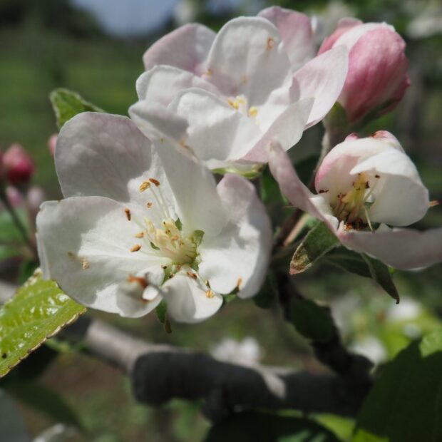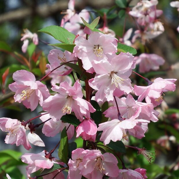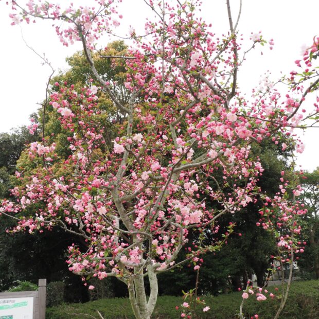 ハナカイドウはリンゴの仲間(なかま)(はる)淡い(あわい)ピンク色(ぴんくいろ)(はな)垂れ下がっ(たれさがっ)咲き(さき)ます。 中国(ちゅうごく)で「海棠(かいどう)(かいどう)」は美人(びじん)代名詞(だいめいし)でした。
