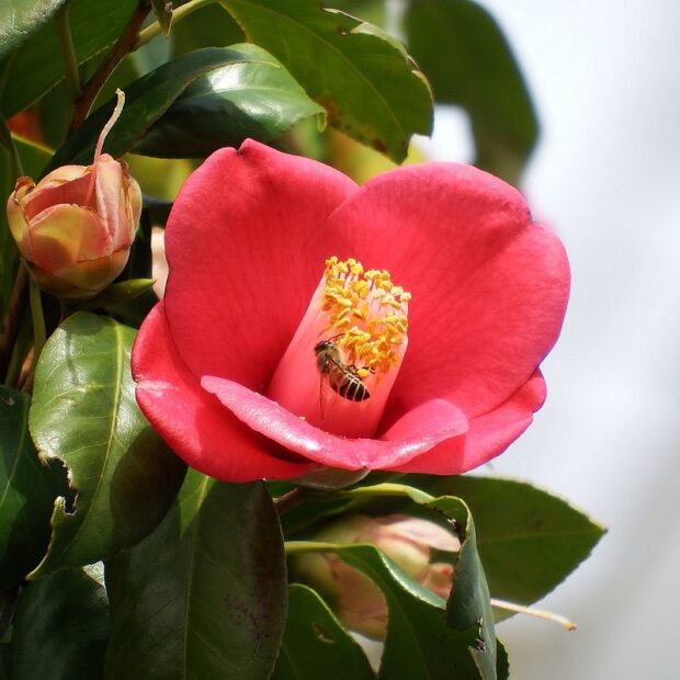 B:ヤクシマツバキ(別名(べつめい)リンゴツバキ) C:リンゴ