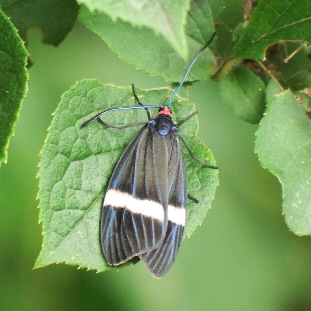 サワフタギには、シロシタホタルガの幼虫(ようちゅう)がよくいます。ぜひ見つけ(みつけ)てください。 ※写真(しゃしん)はシロシタホタルガの成虫(せいちゅう)(1枚(まい)目(め))と幼虫(ようちゅう)(2枚(まい)目(め))