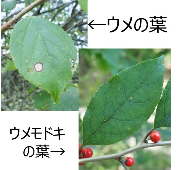 ウメモドキは()がウメに()ているから名前(なまえ)についたと言わ(いわ)れていますが・・そこまで()てるでしょうか?