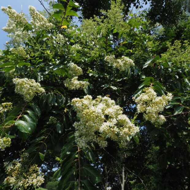 シマサルスベリは、日本(にっぽん)では奄美諸島(あまみしょとう)などの島(しま)に自生(じせい)する木(き)です。他(た)の地域(ちいき)の公園(こうえん)などで見(み)られるものは、人(ひと)が植え(うえ)たものです。
