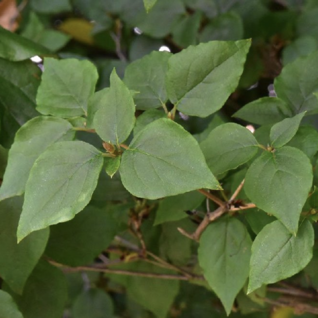 葉(は)が枝(えだ)先(さき)を3枚(まい)で取り囲む(とりかこむ)ようにつくことから、ミツバウツギとよばれます。