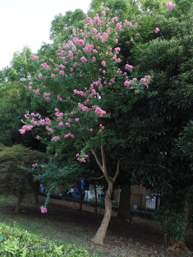 サルスベリは幹(みき)がツルツルで猿(さる)もすべりそう……ということでつけられたんだね。他(た)の地方(ちほう)では、同じ(おなじ)ような幹(みき)のナツツバキやリョウブなどをサルスベリと呼ん(よん)だりするんだ。