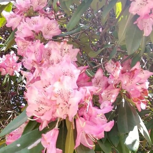 暑い(あつい)地方(ちほう)に生える(はえる)シャクナゲと涼しい(すずしい)高地(こうち)に生える(はえる)シャクナゲをかけ合わ(あわ)せて作ら(つくら)れた品種(ひんしゅ)だから。