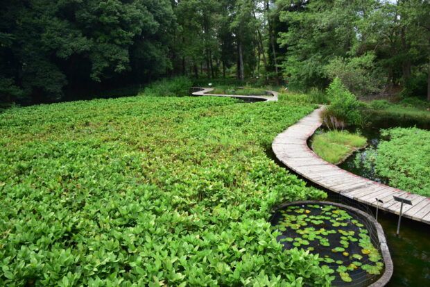 水生植物は、 水質、 気候、 土壌などの環境の違いによって生育できる種類が異なります。 区画を「山間の沢沿い」「山間の湿地」「水田・ため池」「低地の湿地」「高山帯の湿原」に分け、 各環境に適応した水生植物が植栽されています。