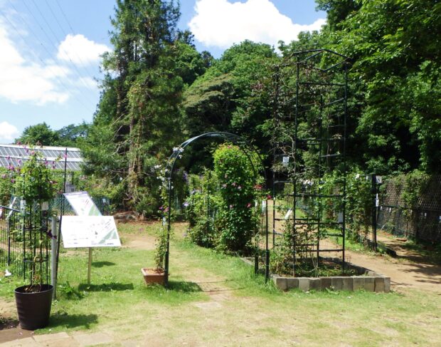 さまざまな色や形の花が楽しめる、 キンポウゲ科センニンソウ(Clematis)属のクレマチス。 日本産のカザグルマをはじめとする野生種や代表的な園芸品種などおよそ230種類1200株が栽培されています。