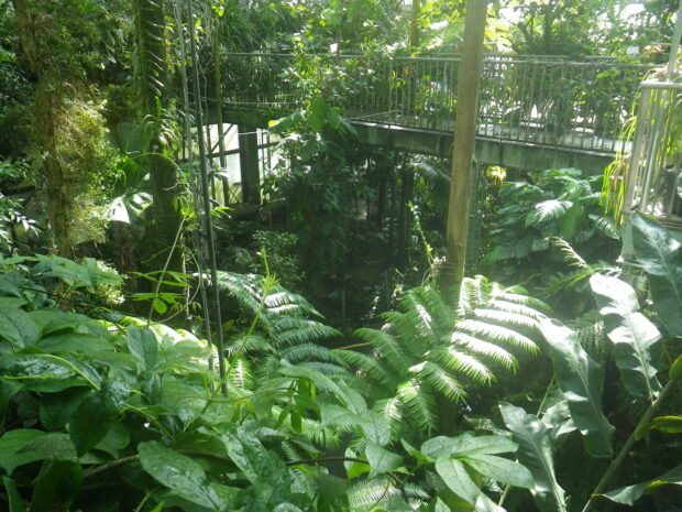 アジア、 オセアニアの熱帯から亜熱帯で雨の多い地域の植物が植栽されています。 地上、 水辺、 樹上など、 植物はあらゆる場所に適応しています。 湿度が高い低地林室と、 熱帯山地の涼しい環境を再現した山地林室に分かれています。