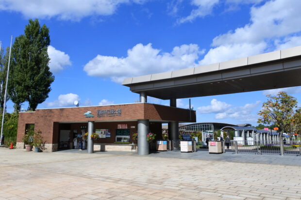 ベビーカー・車椅子・リヤカー等の無料貸出を行っています。 ゲート付近には、 ボランティアお手製のハンギングバスケットの飾りが皆さんをお迎えします。