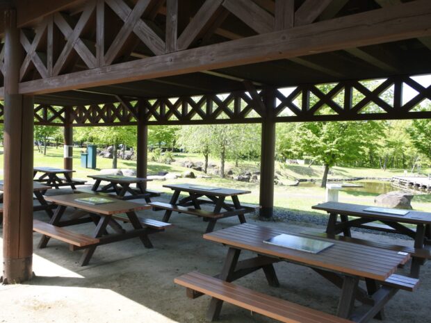 緑溢れる公園でアウトドアクッキングが楽しめます。 手ぶらでも持込みでもOK。 屋根付きサイトもあります。 (冬期休止)