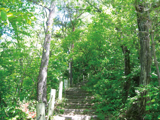 展望台から小倉峠を経て自然探勝路橋に至る自然探勝路は、 健康ゾーンを囲む山並みの稜線を縦走する散策路です。 春の新緑、 夏の緑陰、 秋の紅葉、 冬の雪景色で四季を通じてハイカーを楽しませてくれます。