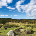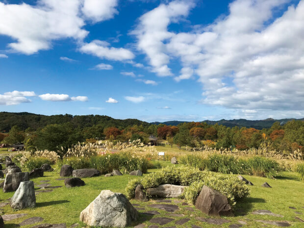 渦巻き状の岩石を星屑に見立て、 イネ科の植物や宿根草が一体となって、 銀河系の星雲を表しています。 花畑では丘の景観にマッチした季節の花々が彩りを添えます。