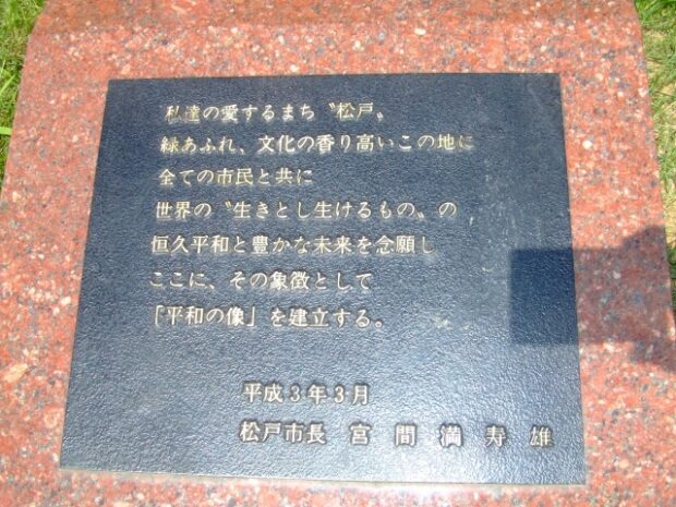 平成3年3月、 恒久平和と豊かな未来を念願し、 その象徴として「平和の像」が建立されました。