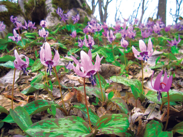 日当たりのよい里山の斜面2haに100万株のカタクリが開花します。