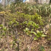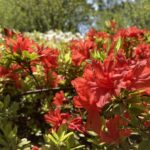 ランチコーナーの近くで鮮やかな赤い花を咲かせているオオクボツツジ。 名前のとおり、 新宿区大久保にゆかりのある由緒あるツツジです。