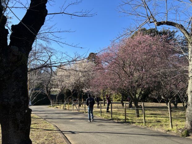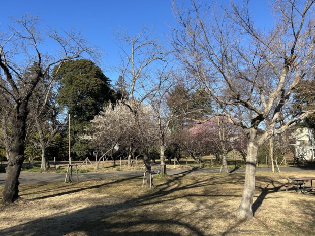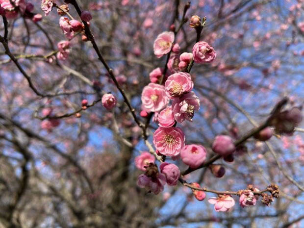 大小様々なの梅の木が植えられています。 早春は紅白の梅の花を見に何度も訪れてください。
