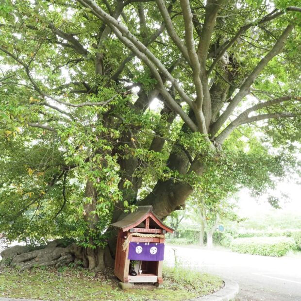 駐車場の奥にエノキの巨木があり、 この根元に「バー神様」がある。 地元の古老の話によると、 以前は2つの祠があったといい、 風邪の神様と疱瘡の神様であったという。 現在は1つの祠しかないが、 ここに住んでいた家が野呂の街中に移転したときにもう一つの祠を持って行ったという。