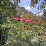 ”いずみ橋”は、 泉自然公園のシンボルとなっています。 公園内の数少ない眺望がきく場所で、 春の新緑と秋の紅葉は絶景です。
