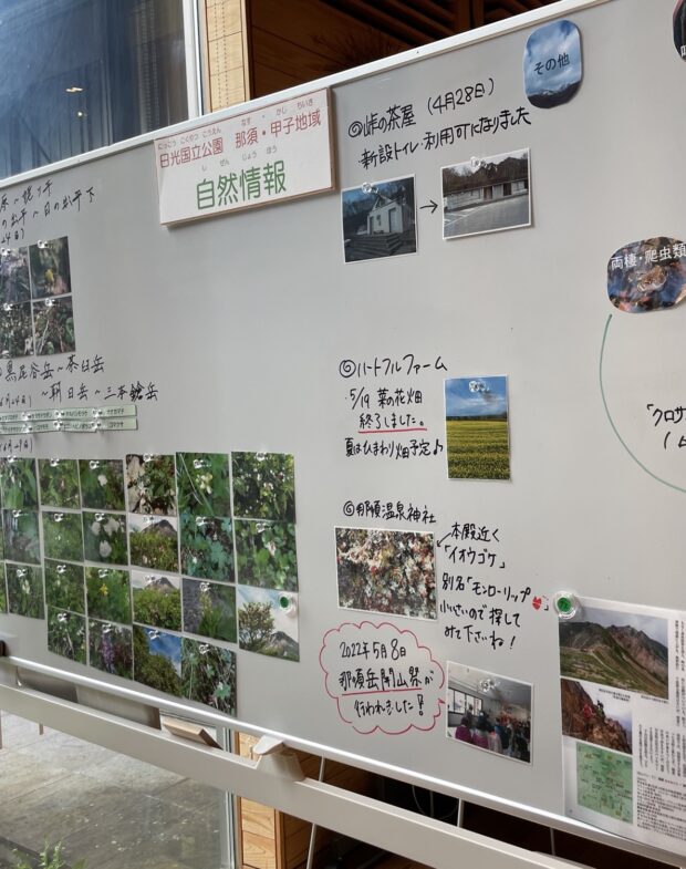 那須甲子エリアの情報を分かりやすく展示。 週末はネイチャークラフトも体験できます。