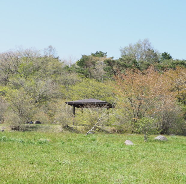 園地の中にあるあずま屋です。 ベンチが設置されており那須高原のさわやかな風を感じながら休憩できます。