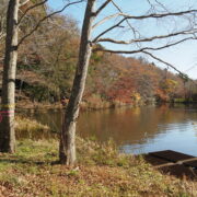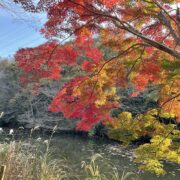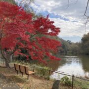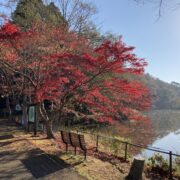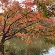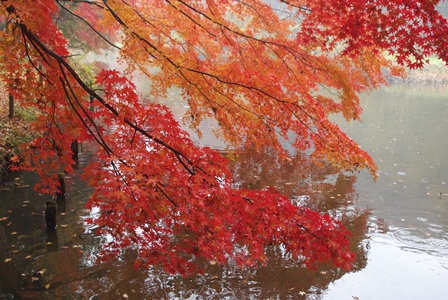 冬(2−3月)は池の対岸、 垂れ下がった木の枝の間から、 鮮やかな姿のオシドリの雄がちらちらと見られる時もあります。