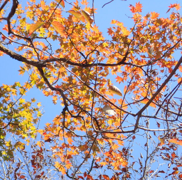 イロハモミジ以外にメグスリノキやエンコウカエデ、 オオモミジ、 イヌシデなど様々な木の紅葉・黄葉が楽しめます。