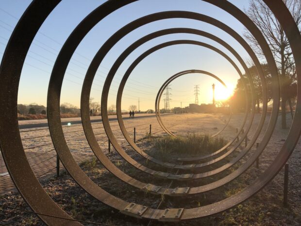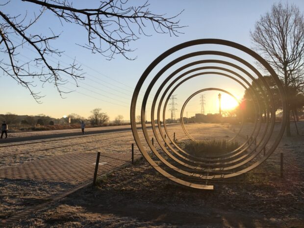 利根川・江戸川流域の人々の生活を守り支えている北千葉導水路、 その導水管の上部に整備された公園が県立手賀沼自然ふれあい緑道です。 導水管を実物スケールでモニュメントとしたものが「水のスパイラル」柏ふるさと公園、 柏ふるさと大橋のすぐ近くにあります。